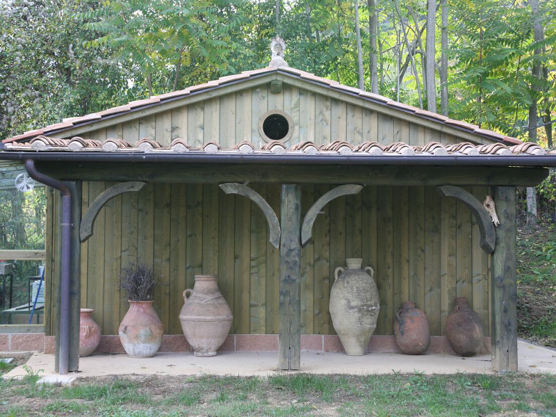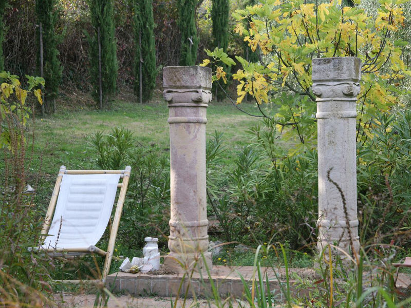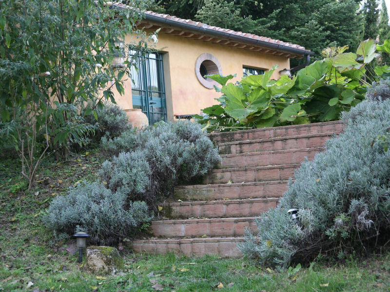 Ma non è finita qui: dopo tutte le opportune autorizzazioni, abbiamo anche scavato un laghetto con le ninfee su una collinetta creata appositamente. Una scalinata che conduce verso la zona pavimentata intorno al laghetto dove si può stare seduti e uno studio estivo in stile antico hanno completato l’area, che guarda l’intera vallata della riserva naturale dove il podere è ubicato. Una piccola meravigliosa zona di paradiso.